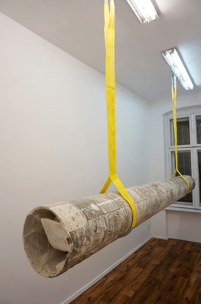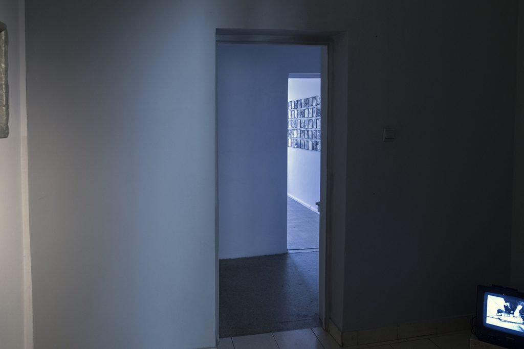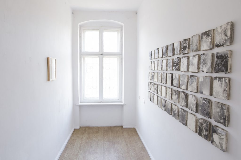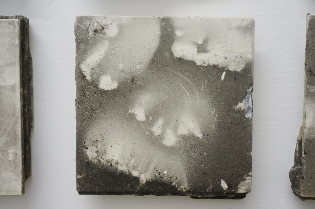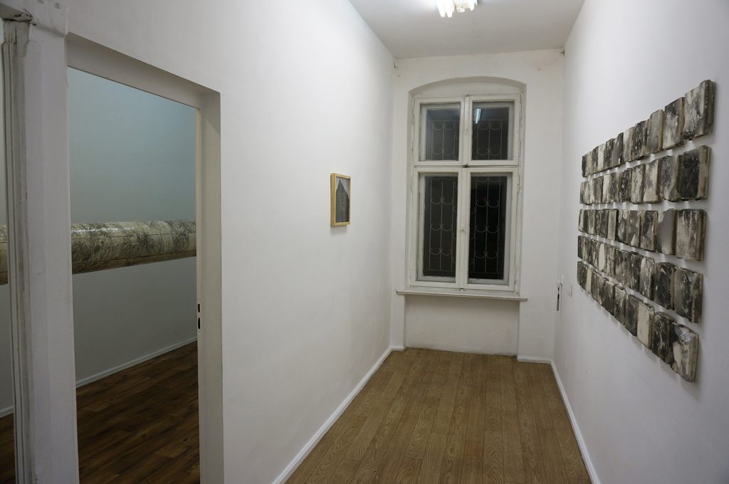 Wystawa Dogonić Resztki jest wynikiem procesu eksploracji tkanki podziemnej zabudowy. Analizuje obszar ekstremalnie zredukowanego komfortu, którego schrony, bunkry i podziemne tunele dostarczają w nadmiarze. Gruz z wyburzonych kabin prysznicowych stworzył brutalistyczny nasyp. Opadający kurz wygenerował na jego powierzchni wielowarstwowe, fotograficzne obrazy minionego czasu. Nie chodzi jednak o poszukiwania rozpatrywane w kontekście wydarzeń historycznych. Resztki, ślady i śmieci, które budowały przyszłość, stały się świadkami własnej materii. Wydobyte spod ziemi posłużyły do reinterpretacji struktury ekonomicznej, organizacji życia społecznego i systemu wartości jakie budowały podziemną kulturę. Archiwalny zapis programu instruktażowego Walt Builds, sfinansowany przez grupę amerykańskich producentów materiałów budowlanych, skutecznie zainicjował wówczas reprodukcję paniki. Doprowadziło to do masowej budowy przydomowych schronów, pobudzając tym samym rynek sprzedaży betonu w USA. Prace są wynikiem recyclingu architektonicznego, bazując na tym, co nastąpiło po, a nie w trakcie ich użytkowania. Jedna z wykafelkowanych ścian popękała pod wpływem naporu ziemi wraz z wibracją wytworzoną przez pobliską kolej. W ceramiczne bruzdy wdarł się brud i wilgoć, tworząc zapis mikro-kanałów i abstrakcyjnych ścieżek. Funkcjonalna architektura będąca wytworem cywilizacji technologicznej, stała się narzędziem, które miało cofnąć znaczną część ludzkości z powrotem na ewolucyjny szczebel zbieractwa. Porzucone schrony utraciły swoją pierwotną funkcję, a kataklizm przed którym miały chronić skumulował się w ich wnętrzu. Złomiarze wysysający metal z betonowych szkieletów, pasjonaci militariów czy kluby prepersów żyjący resentymentem wojennym kształtują myślenie o współczesnych podziemiach. Strategia wydobywania na wierzch surowca jakim jest zniszczenie i utracone bezpieczeństwo, staje się tu nie tylko kolejną strategią eksploracji podziemnego świata, ale również materializowania tego, co rozproszone i rozszczepione w przestrzeni; ułożenie „resztek” na powrót w nowe konstelacje oraz własne systemy form i znaczeń.