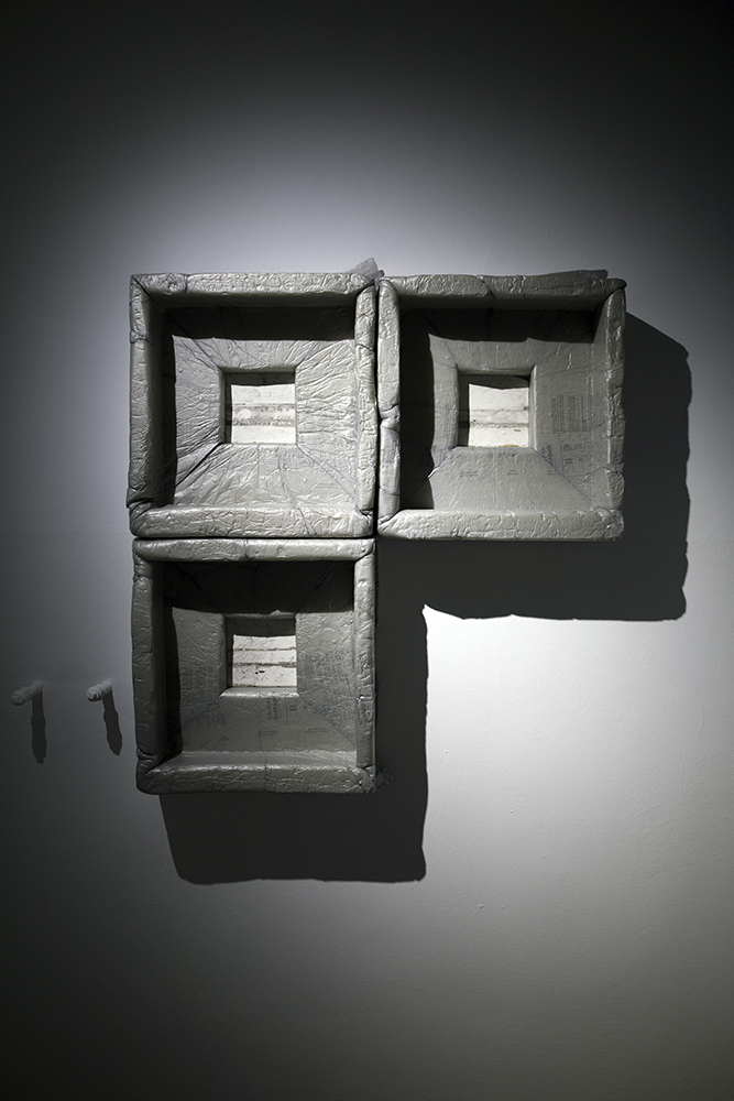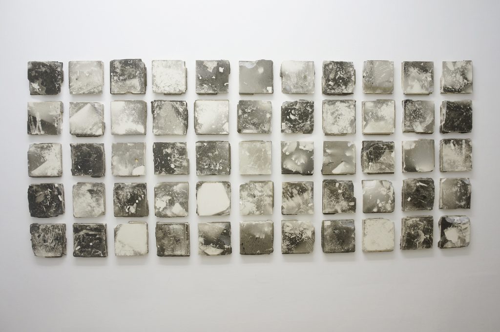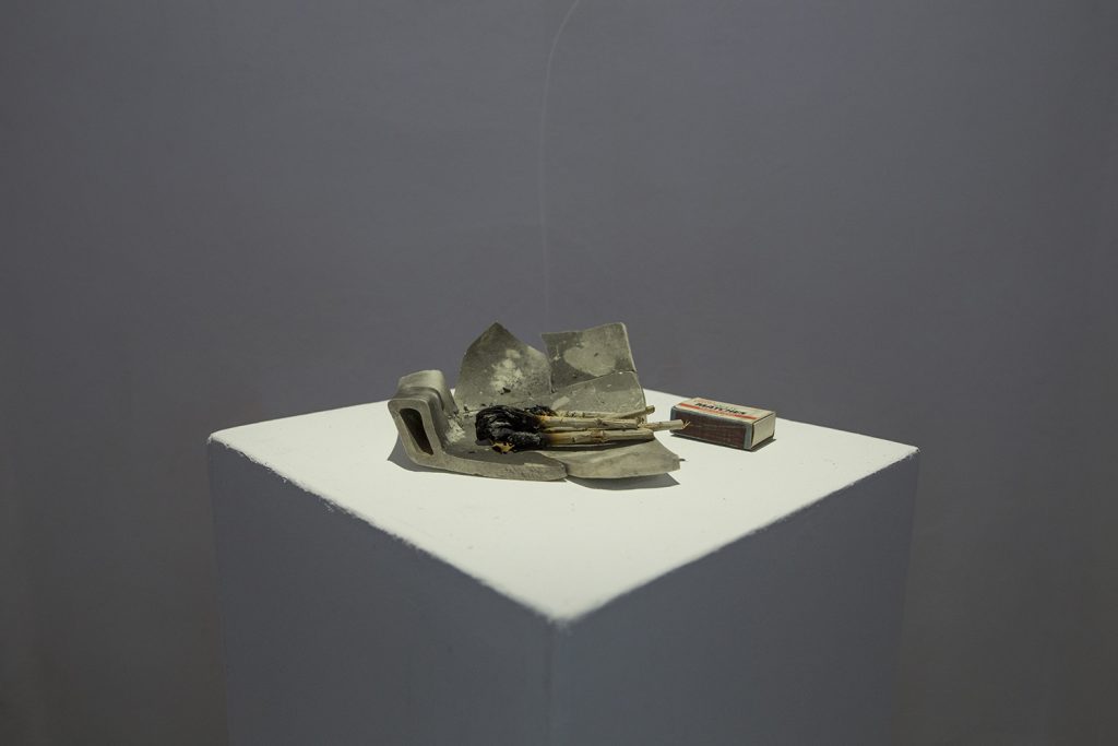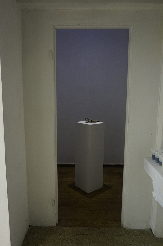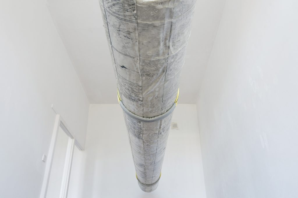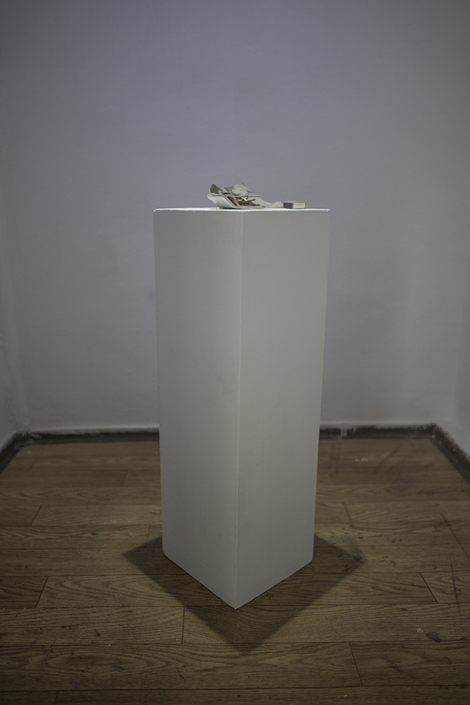 Wystawa Dogonić Resztki jest wynikiem procesu eksploracji tkanki podziemnej zabudowy. Analizuje obszar ekstremalnie zredukowanego komfortu, którego schrony, bunkry i podziemne tunele dostarczają w nadmiarze. Gruz z wyburzonych kabin prysznicowych stworzył brutalistyczny nasyp. Opadający kurz wygenerował na jego powierzchni wielowarstwowe, fotograficzne obrazy minionego czasu. Nie chodzi jednak o poszukiwania rozpatrywane w kontekście wydarzeń historycznych. Resztki, ślady i śmieci, które budowały przyszłość, stały się świadkami własnej materii. Wydobyte spod ziemi posłużyły do reinterpretacji struktury ekonomicznej, organizacji życia społecznego i systemu wartości jakie budowały podziemną kulturę. Archiwalny zapis programu instruktażowego Walt Builds, sfinansowany przez grupę amerykańskich producentów materiałów budowlanych, skutecznie zainicjował wówczas reprodukcję paniki. Doprowadziło to do masowej budowy przydomowych schronów, pobudzając tym samym rynek sprzedaży betonu w USA. Prace są wynikiem recyclingu architektonicznego, bazując na tym, co nastąpiło po, a nie w trakcie ich użytkowania. Jedna z wykafelkowanych ścian popękała pod wpływem naporu ziemi wraz z wibracją wytworzoną przez pobliską kolej. W ceramiczne bruzdy wdarł się brud i wilgoć, tworząc zapis mikro-kanałów i abstrakcyjnych ścieżek. Funkcjonalna architektura będąca wytworem cywilizacji technologicznej, stała się narzędziem, które miało cofnąć znaczną część ludzkości z powrotem na ewolucyjny szczebel zbieractwa. Porzucone schrony utraciły swoją pierwotną funkcję, a kataklizm przed którym miały chronić skumulował się w ich wnętrzu. Złomiarze wysysający metal z betonowych szkieletów, pasjonaci militariów czy kluby prepersów żyjący resentymentem wojennym kształtują myślenie o współczesnych podziemiach. Strategia wydobywania na wierzch surowca jakim jest zniszczenie i utracone bezpieczeństwo, staje się tu nie tylko kolejną strategią eksploracji podziemnego świata, ale również materializowania tego, co rozproszone i rozszczepione w przestrzeni; ułożenie „resztek” na powrót w nowe konstelacje oraz własne systemy form i znaczeń.